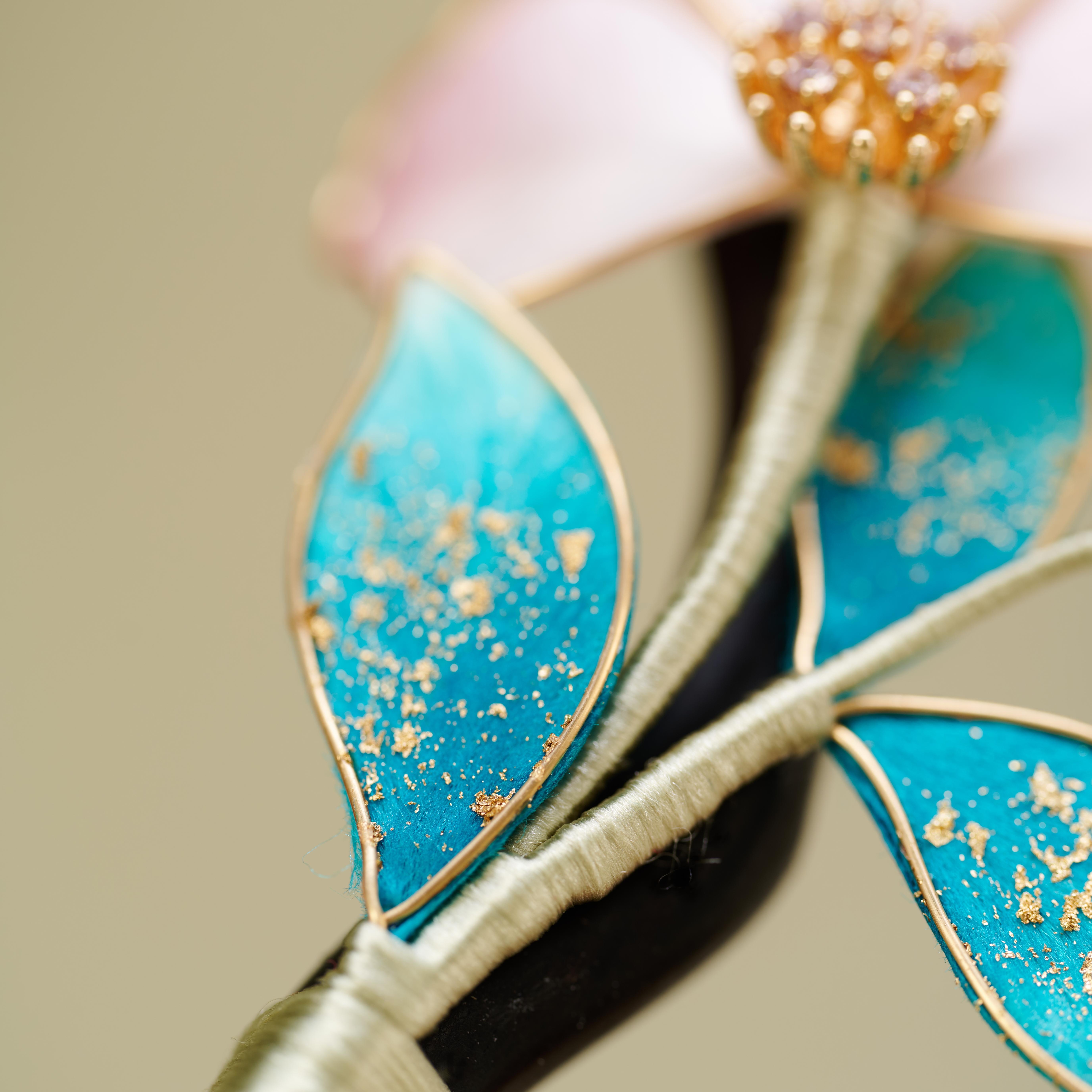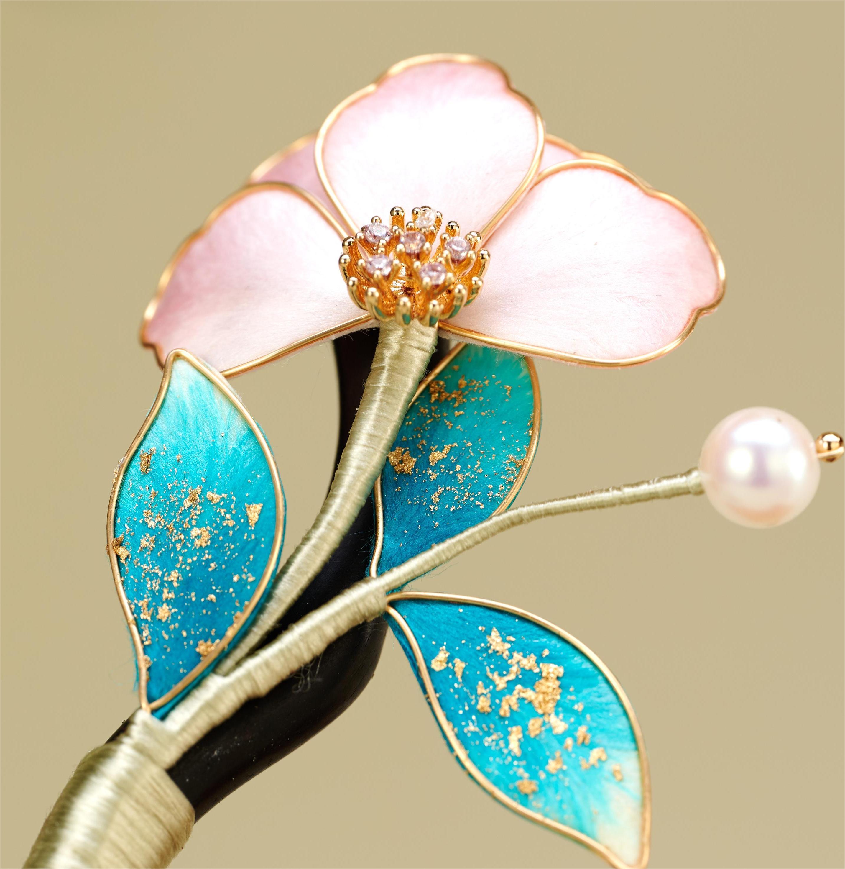 - Product details:This brooch, meticulously crafted to the extreme, is a tribute to the long-standing silk-making and filigree enamel techniques. It is made of high-quality silk and has a soft and elegant texture.One flower, two forms; Movement and stillness each have their own charm. The hairpin curves smoothly, imitating the natural posture of peony branches and leaves swaying in the gentle breeze, as if capturing the moment of soft movement. When you wear it on your hair, it adds a dynamic beauty, just like peonies blooming and dancing on your hair. On the other hand, the brooch has a simple shape, condensing the essence of the peony into a static yet powerful design. Just like the moment when a flower blooms, it exudes an air of nobility and elegance.