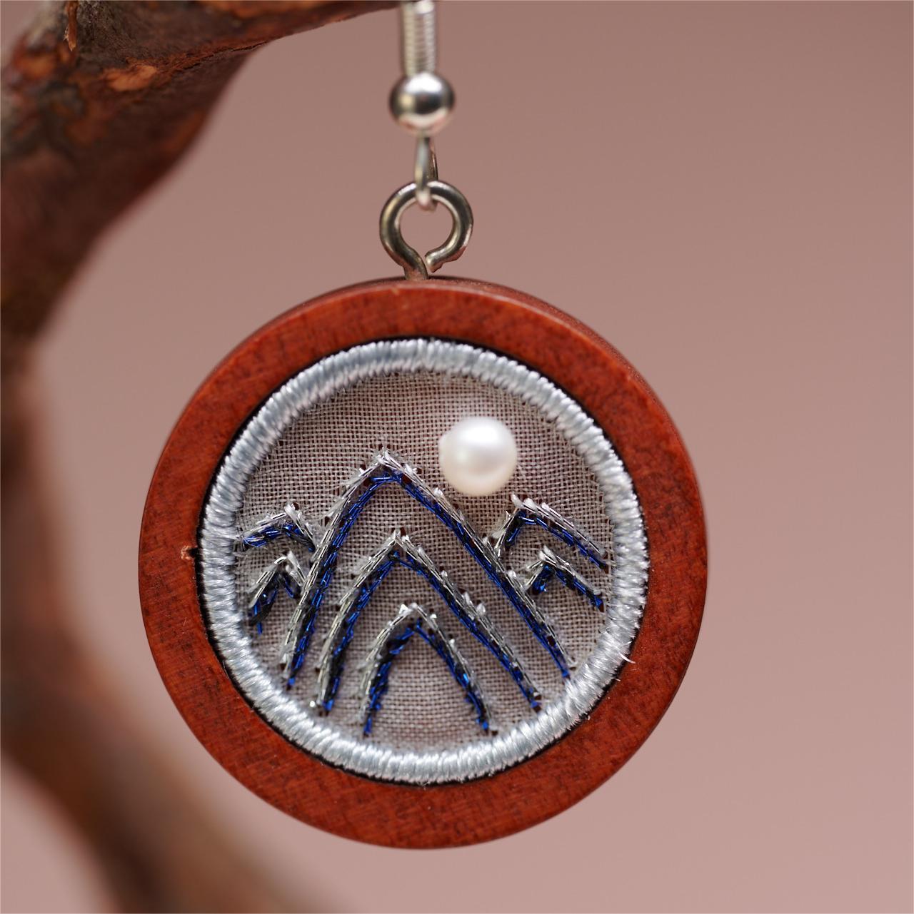 - Product Details:Earring craftsmanship includes hand-made double-sided embroidery and hand-wound thread frames. They are embroidered with the needle rolling technique. With the spiritual core of "Mutual understanding like high mountains and flowing water", we reconstruct the cultural symbols of a thousand years with contemporary design language. The mountain shape adopts the blank space artistic conception of Northern Song Dynasty ink-wash paintings, and the water patterns draw on the flowing rhythm of Tang Dynasty brocade. Within a 2-centimeter miniature frame, they created the literati aesthetic of "seeing the world in a small space".
