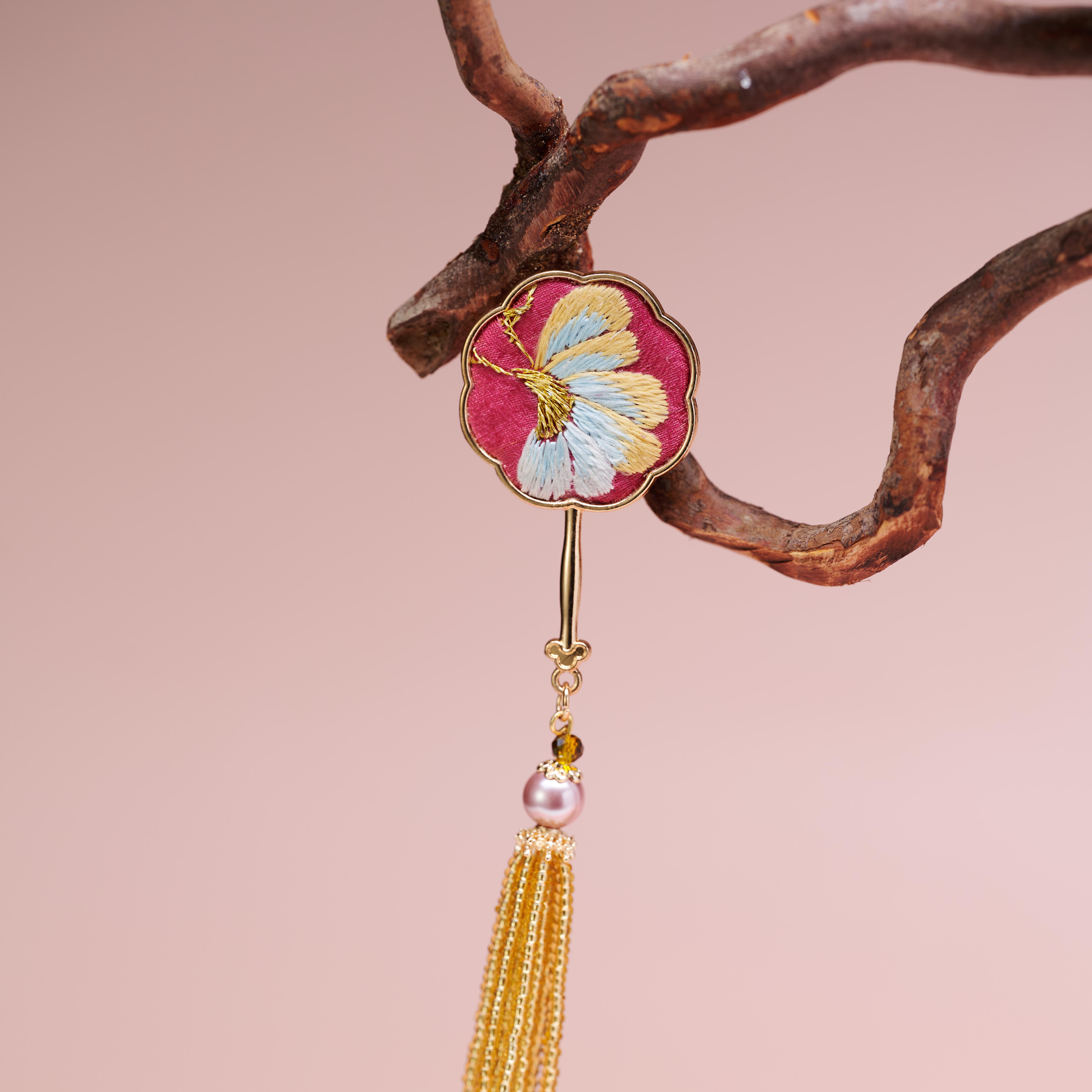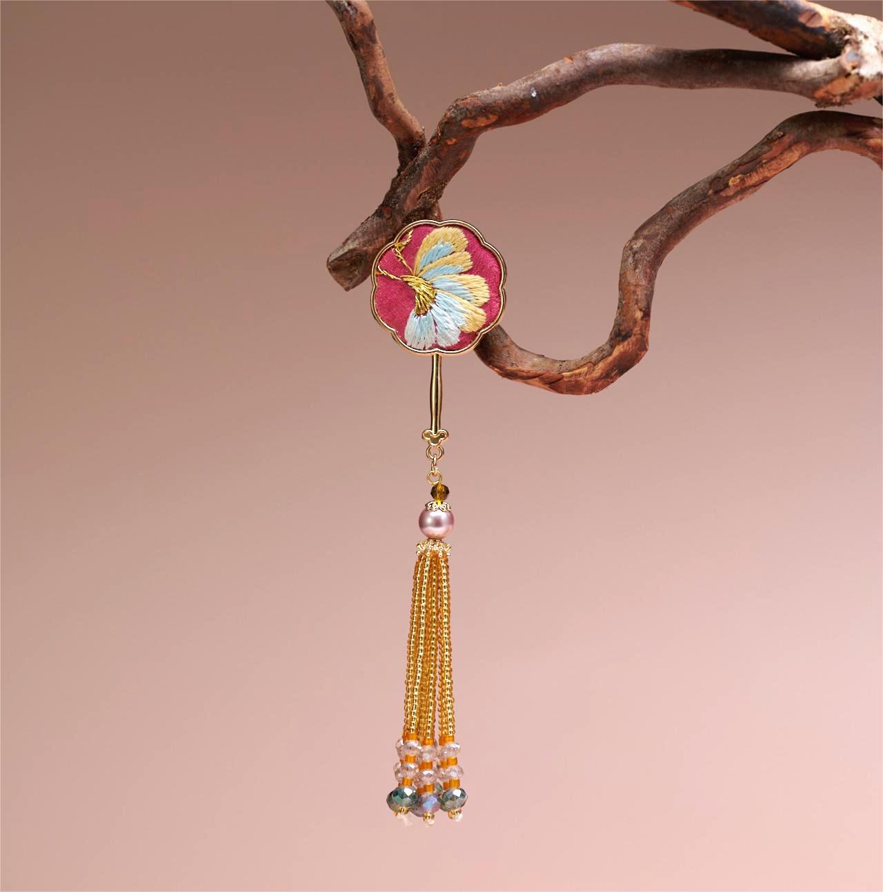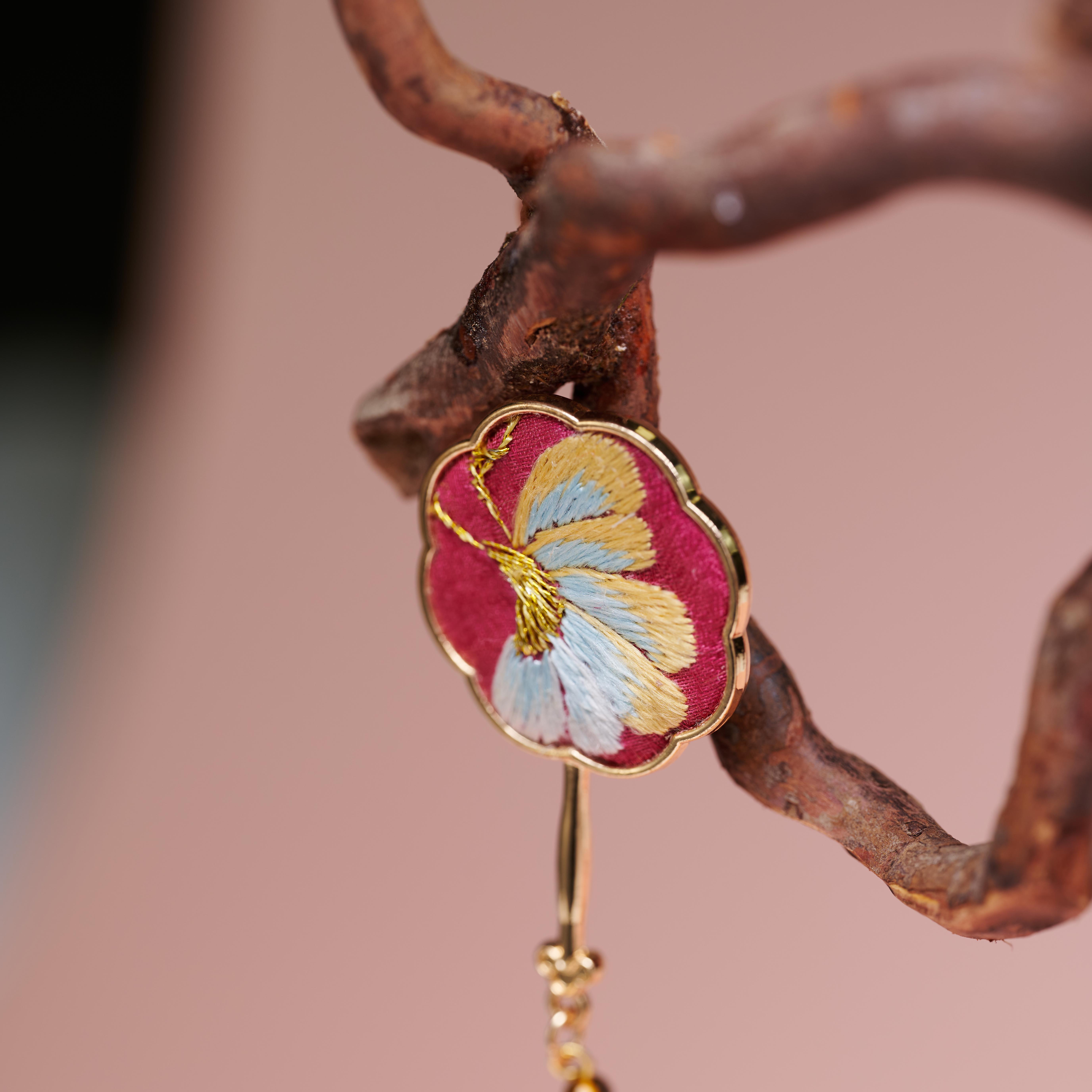 - Product Details:This brooch inspired by the lively beauty and rich cultural symbolism of butterflies, it freezes the graceful posture of these natural creatures in a small space through embroidery. It is not only an ornament but also a miniature work of art carrying art and culture.Featuring a butterfly design with a tassel, when opened, the tassel unfolds like a butterfly breaking out of its cocoon. In Chinese mythology, butterflies symbolize the eternity of love. The butterfly wings adopt an asymmetric design. It pairs well with lapels, even the casual plackets of a denim jacket. Positioned between the collarbone and the heart, the butterfly wings cover the cardiac pulsation point, metaphorically "embroidering vows into one's blood".