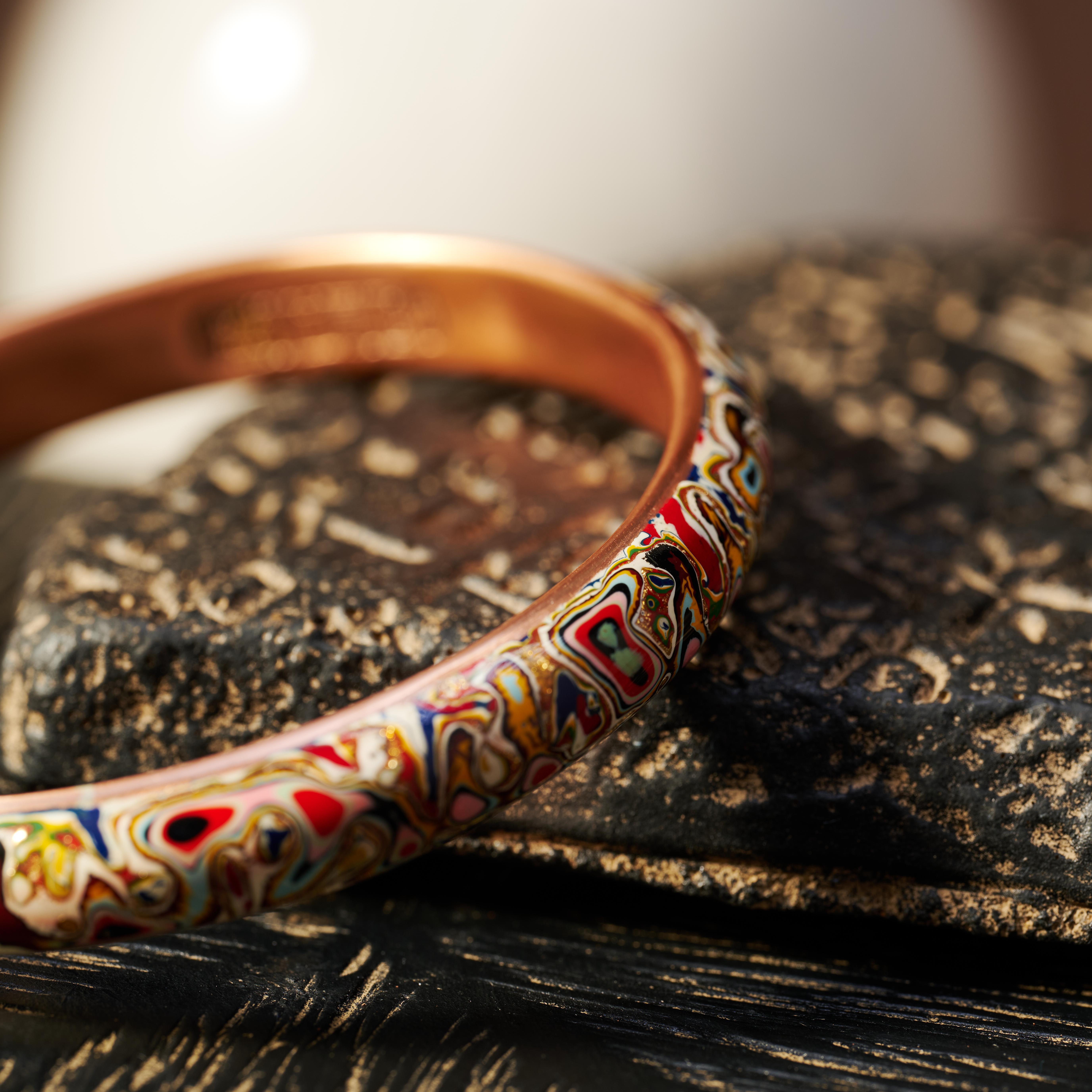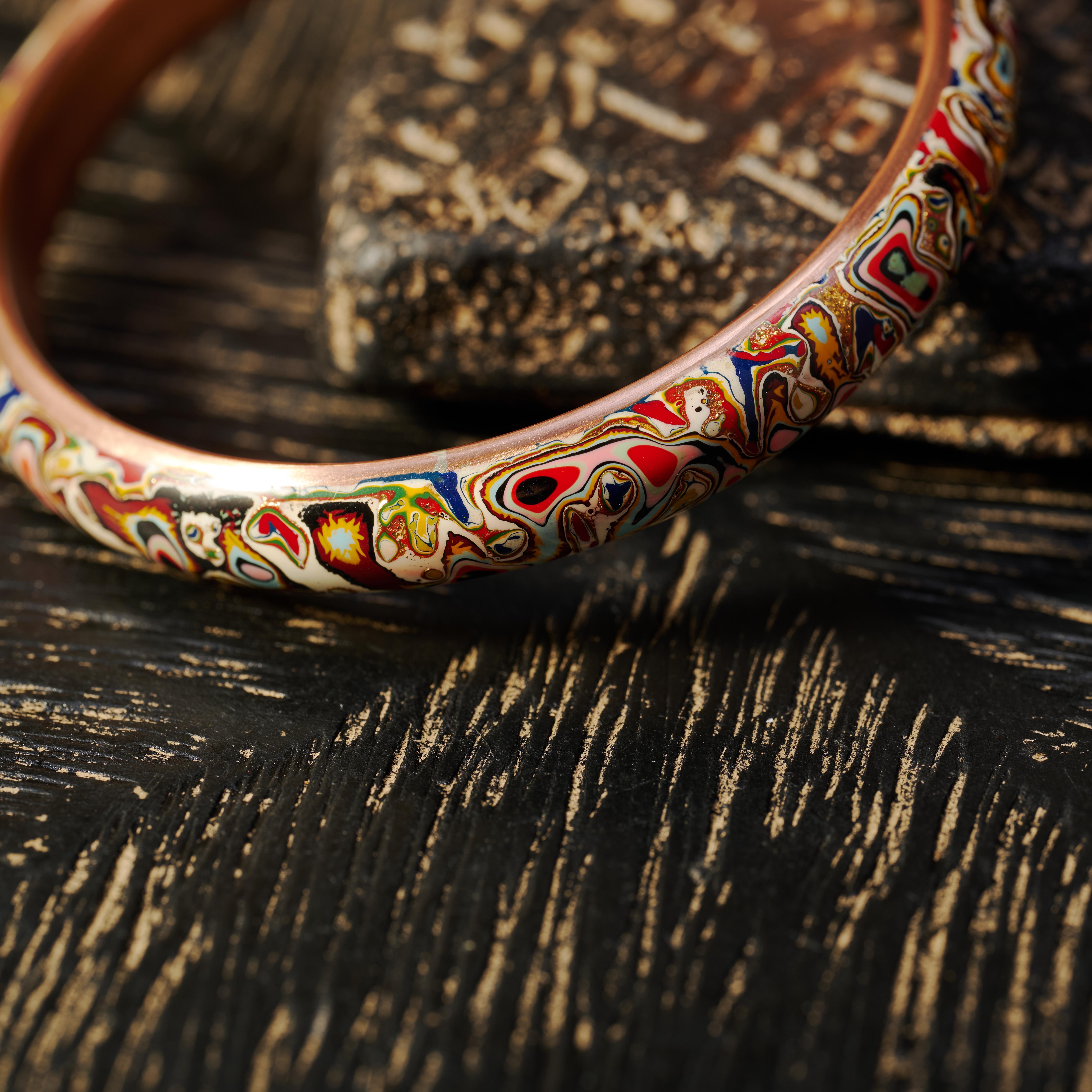 - Product Details:This bracelets crafted from a copper base, horse - hoof - skin lacquer, and gilded material.More than just wearable art around the wrist, it serve as "interfaces to the parallel universe". Both the embryo - making and lacquer - applying processes are entirely handmade, resulting in a long production cycle and a cumbersome process, with a relatively low yield rate.